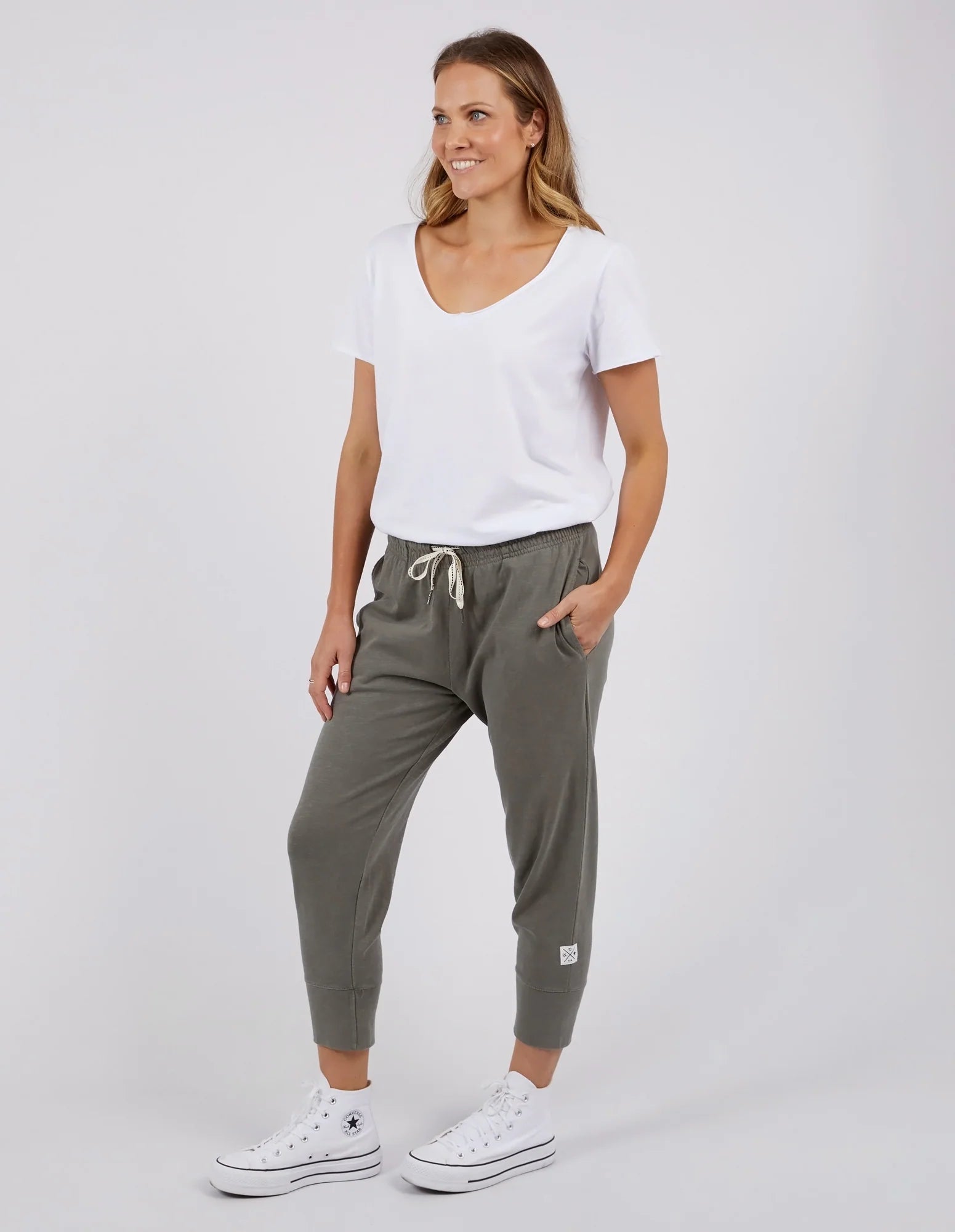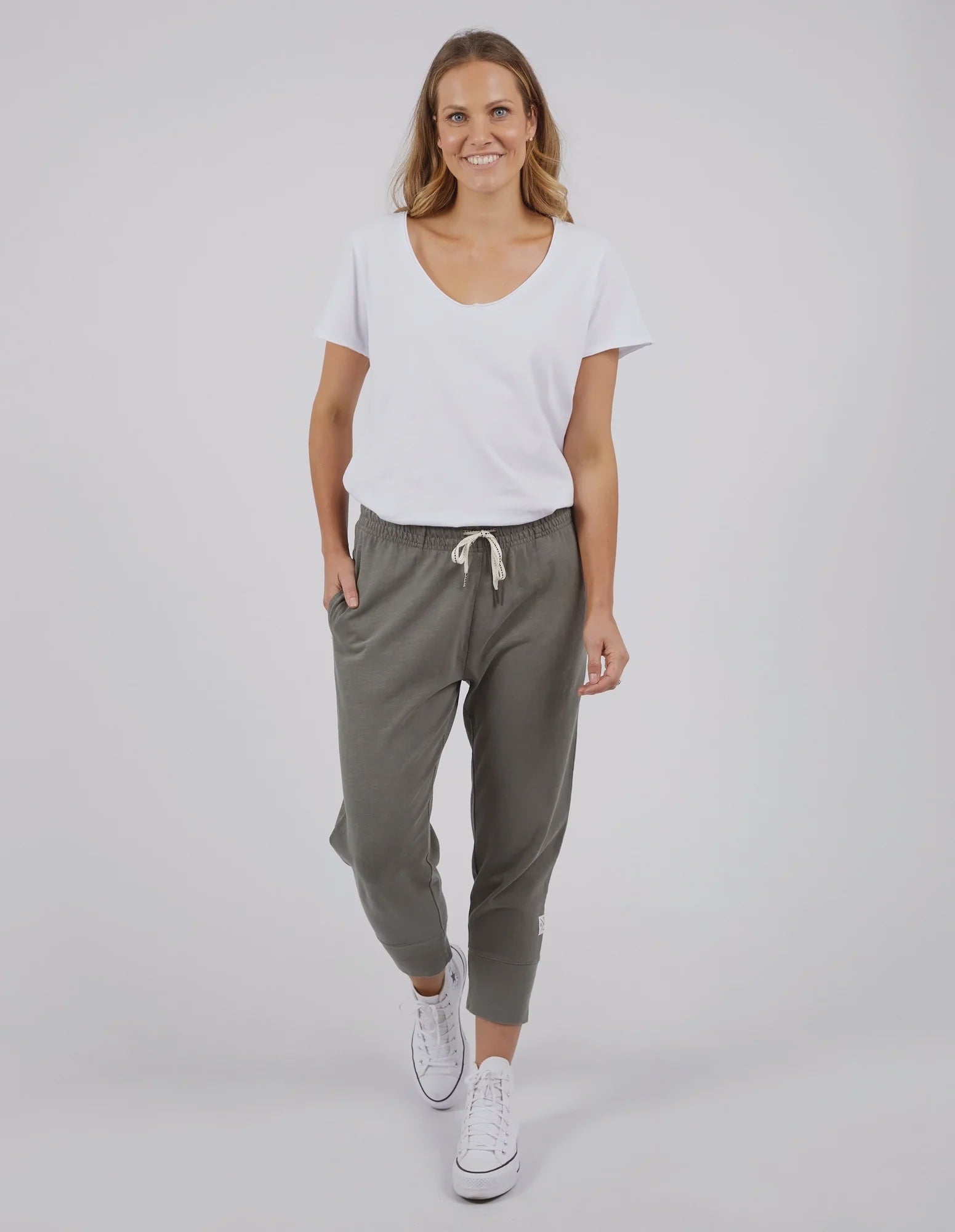 Made From 100% Cotton Slub Jersey, Elm's Best-Selling Brunch Pant Provides A Relaxed Roomy Fit That Is Versatility Plus! With A Comfy Fit Elastic Waistband Paired With An Adjustable Tie, These Cropped Length Pants Feature Large Cuff Detail And Will Be Your Go-To Straight Out Of The Box!