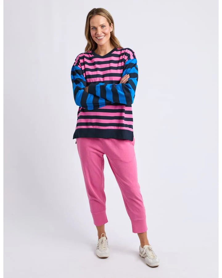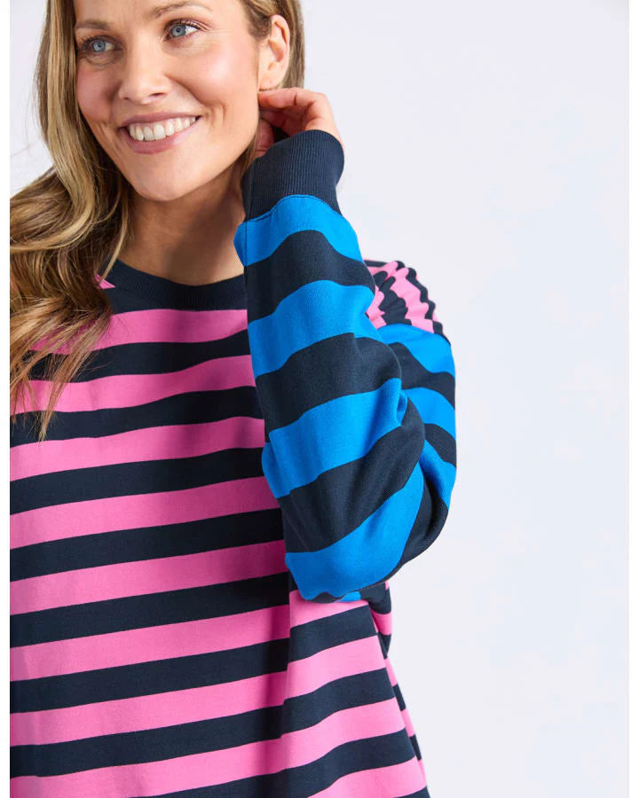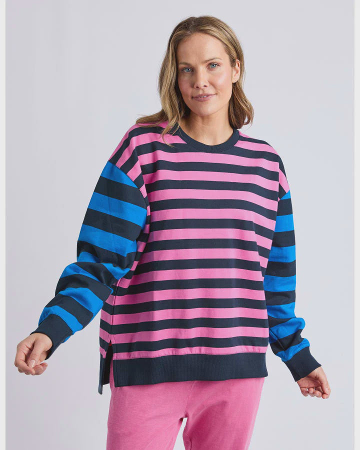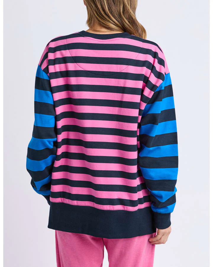 The Elm Eden Crew delivers bold everyday style with contrast sleeves and yarn-dyed stripes. Designed in an oversized fit from soft brushed cotton fleece, its made for relaxed comfort. Style it with straight-leg jeans or relaxed pants and sneakers for an easy, off-duty look.
