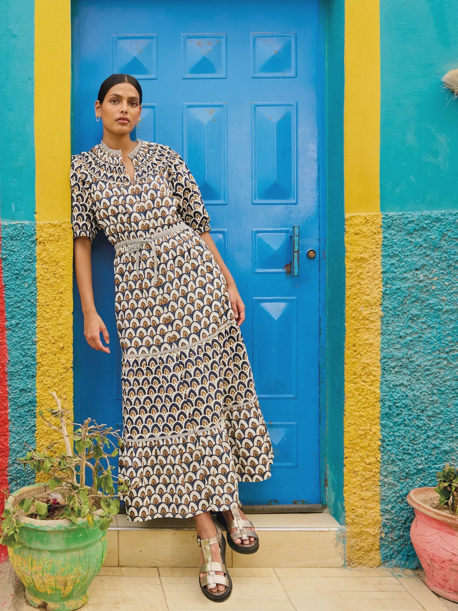 Settle into your new landscape with this sun-ready style. Whether it's the steep streets of Lisbon or the new pub garden around the corner. It's got tiers of character and a classic notch neck.