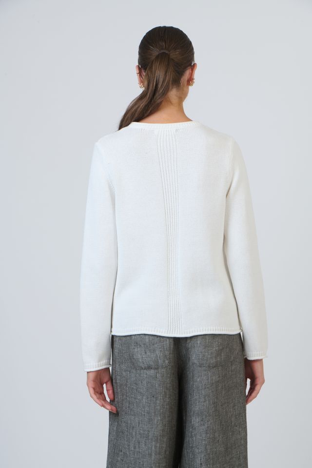 Let understated texture lead the way with the NAT-W52 jumper. Crafted from 100% cotton, its relaxed silhouette falls naturally for an easy, everyday fit. A vertical rib detail at the back adds subtle structure without overwhelming the design. Ribbed trims keep the look polished from every angle. A simple, elevated basic you’ll reach for through every season.