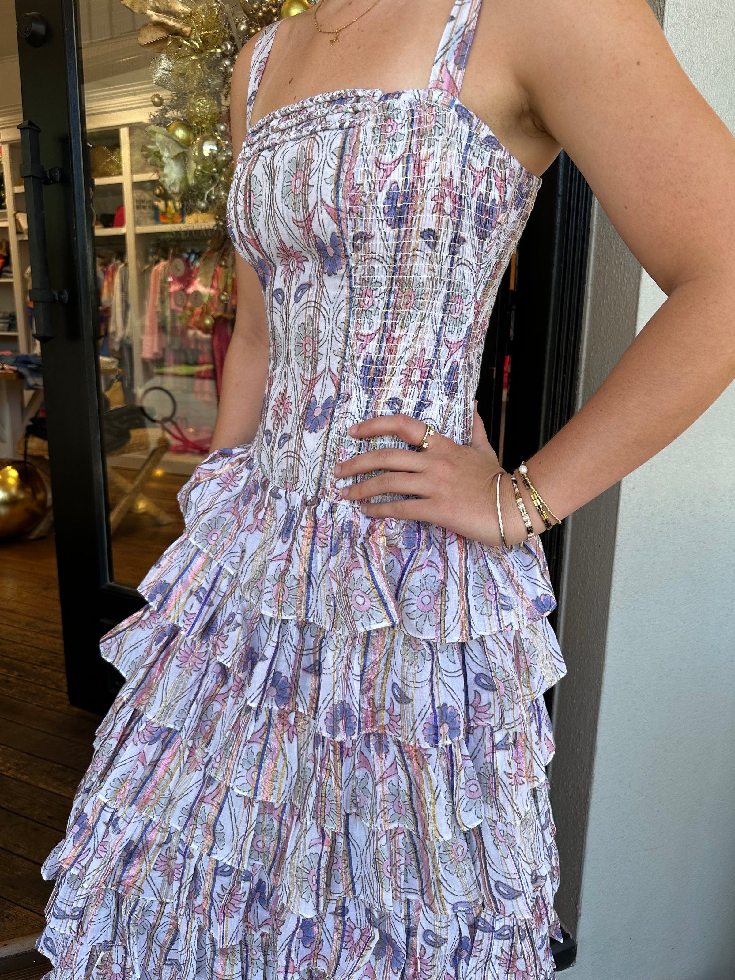 Crafted from delicate cotton sushi voile, the VALENTINA maxi dress features an elasticated back with a discreet zip, flowing in soft ruffled tiers from just below the waist to shape a beautifully full silhouette. This flattering cut complements every figure, making it an unforgettable choice for any special occasion. A true standout piece.